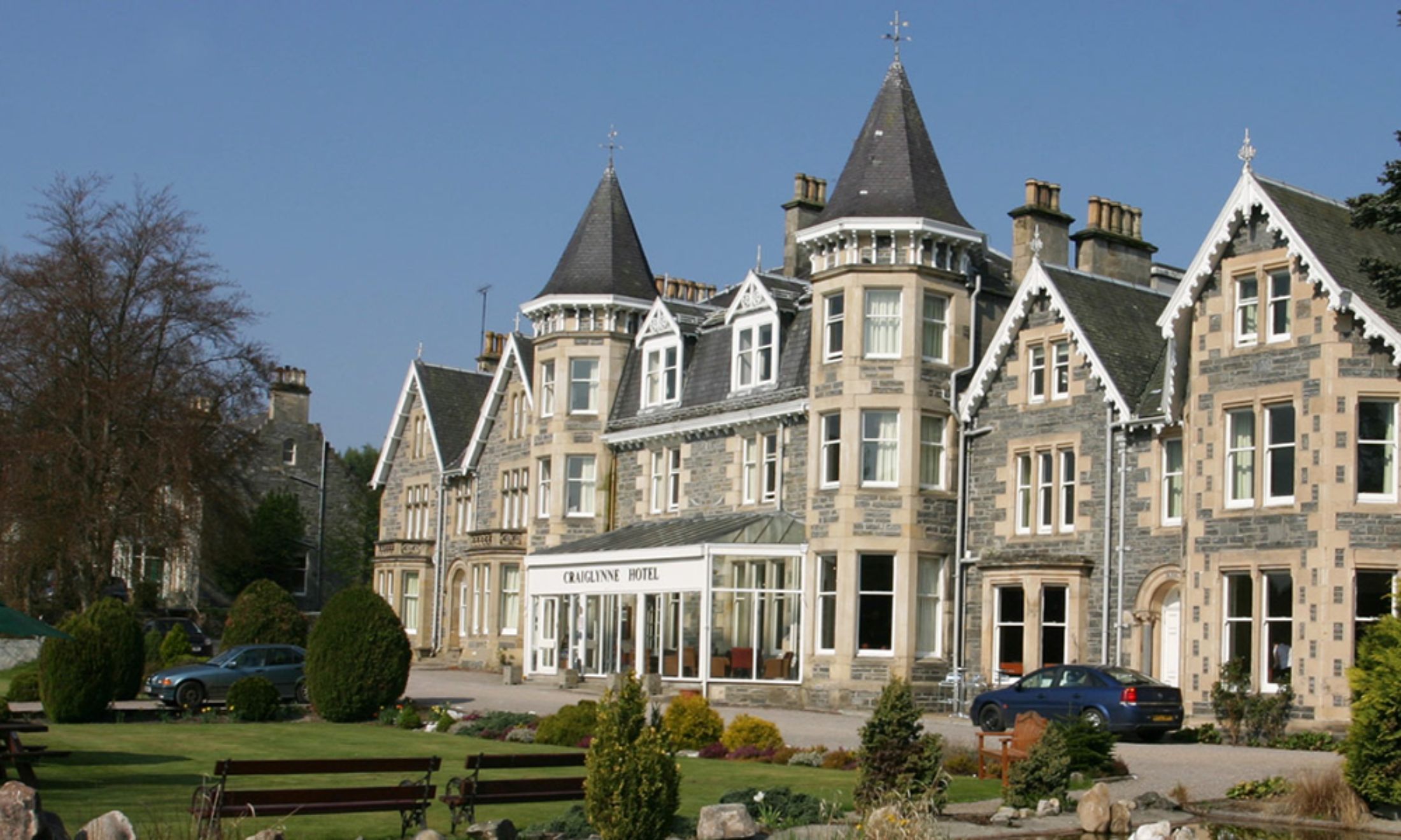 Surrounded by immaculate gardens and views across of the neighbouring Cromdale Hills, the Craiglynne Hotel is located overlooking Grantown-on-Spey, just 12 miles from Aviemore Station and 33 miles from Inverness Airport.
